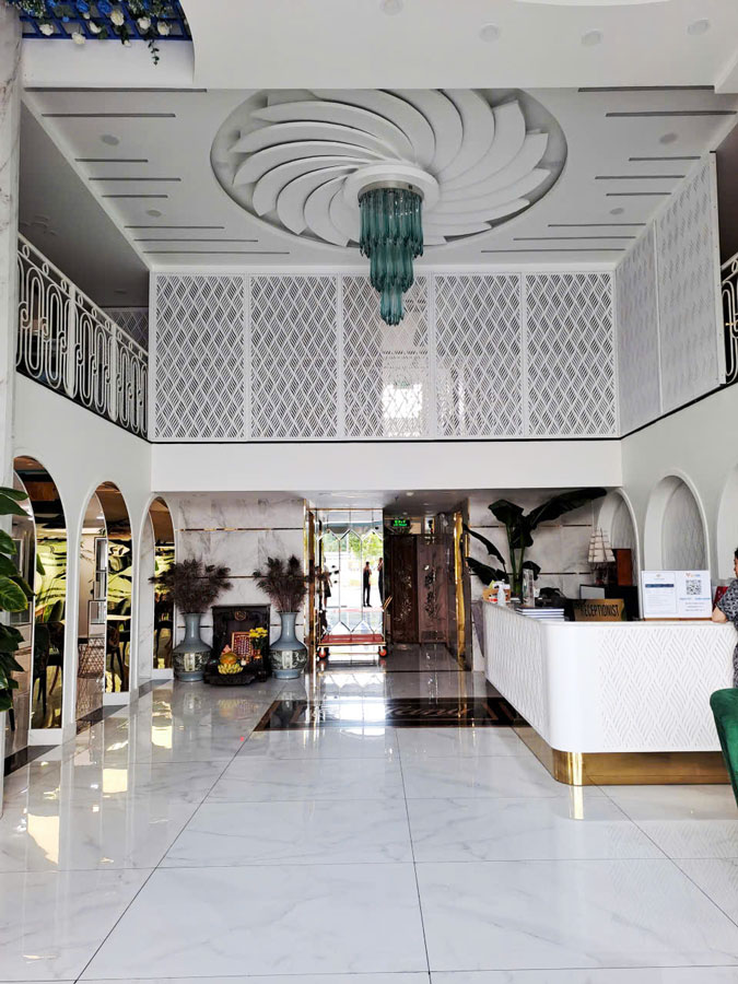 Với các khách sạn tầm trung, bài toán lớn nhất là làm sao vừa đảm bảo thẩm mỹ sang trọng, vừa tối ưu chi phí đầu tư và thời gian thi công. Công trình khách sạn 7 tầng dưới đây là một ví dụ điển hình cho giải pháp sử dụng gỗ công nghiệp kết hợp simili mang lại hiệu quả vượt mong đợi.