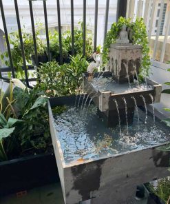 Hồ cá ban công, tiểu cảnh thác nước chảy 2 tầng đặt ban công chung cư