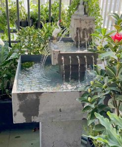 Tiểu cảnh thác nước hồ cá phong thủy thác nước 2 tầng tia độc đáo KT 60cm vuông