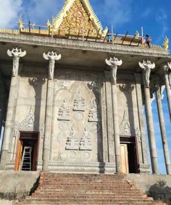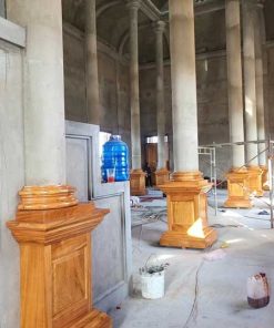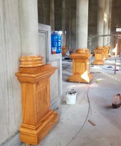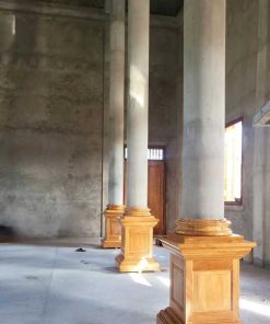 Ốp cột gỗ tròn cao 1.1m – ốp cột gỗ chánh điện chùa Sóc Trăng