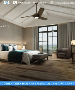 Riêng về mã sàn SPC vân gỗ Z 721: có tông màu gỗ Walnut, các tấm ván sàn biến thiên tạo khối liên kết lạ mắt song vẫn giữ được vẻ đẹp thanh lịch, sang trọng cho không gian nhà bạn.