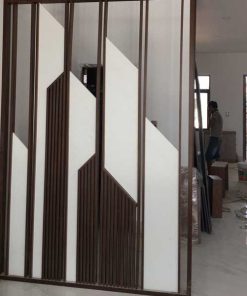 Cầu thang kính + tay gỗ gõ đỏ