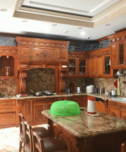 Tủ Bếp Gỗ Gõ Đỏ Nam Phi chữ L tân cổ điển