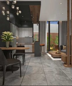 Tủ bếp MDF Chống ẩm phủ melamin An Cường kết hợp Melamin giả đá