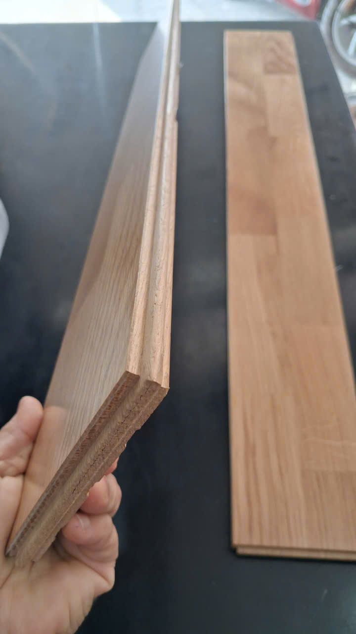 - Tấm ván sàn ghép đôi rộng 4.5cm và ghép bằng keo chuyên dụng